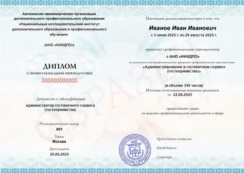 Квалификация: Администратор гостиничного сервиса (гостеприимства)