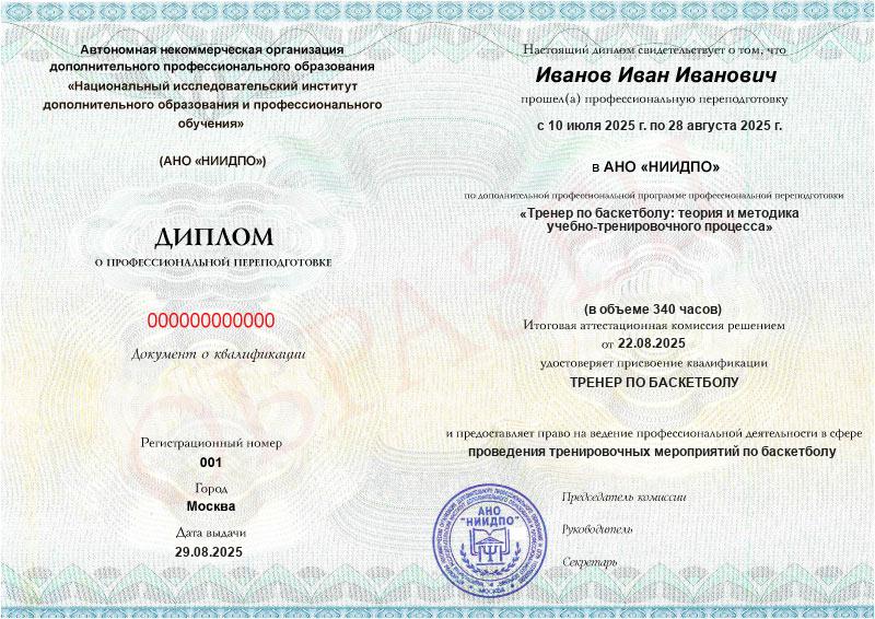 Обзор программы профессиональной переподготовки «Тренер по баскетболу: теория и методика учебно-тренировочного процесса» с присвоением квалификации «Тренер по баскетболу»