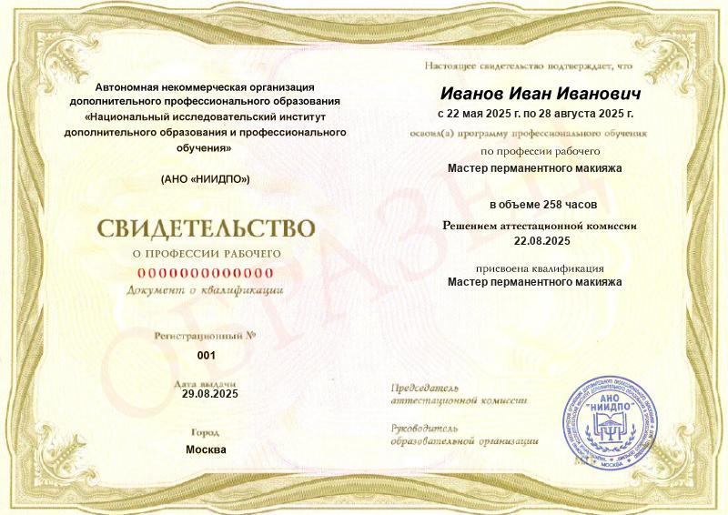 - Квалификация: Мастер перманентного макияжа
