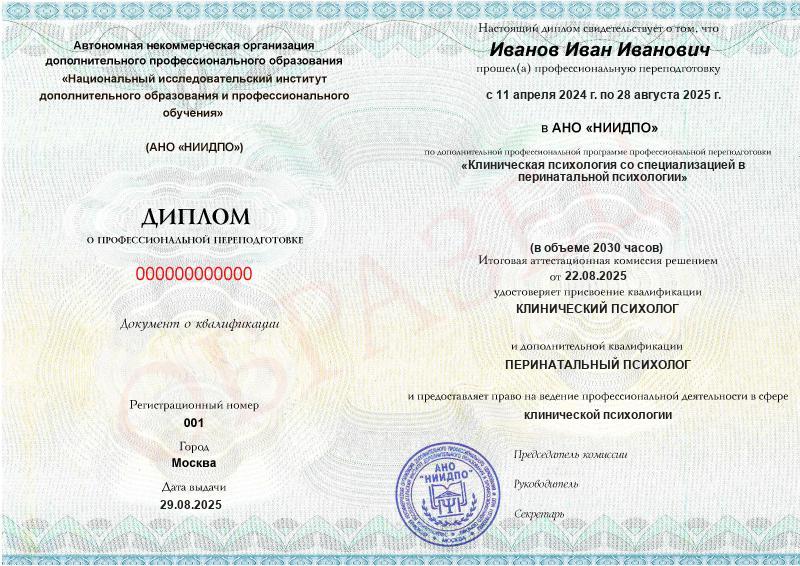 - 2 квалификации: Клинический психолог + Перинатальный психолог