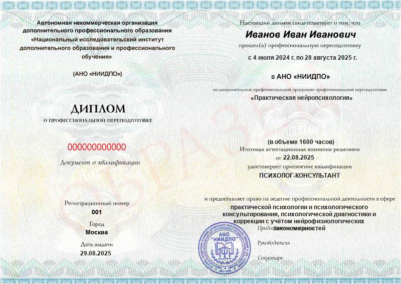 Студент, желающий поступить в АНО «НИИДПО», должен предоставить справку из образовательной организации. Независимо от срока окончания обучения по программе дополнительного образования, диплом о профпереподготовке выдаётся только после предъявления документа о получении среднего профессионального или высшего образования.