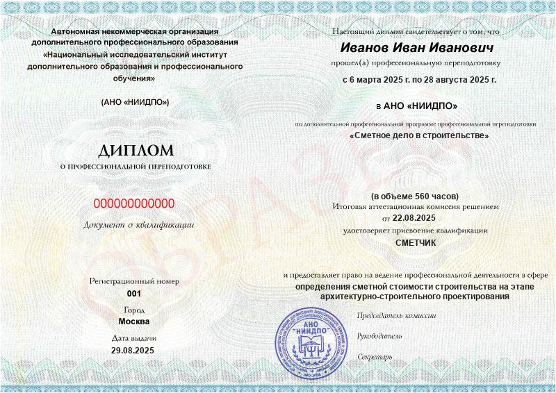 Студент, желающий поступить в АНО «НИИДПО», должен предоставить справку из образовательной организации. Независимо от срока окончания обучения по программе дополнительного образования, диплом о профпереподготовке выдаётся только после предъявления документа о получении среднего профессионального или высшего образования.