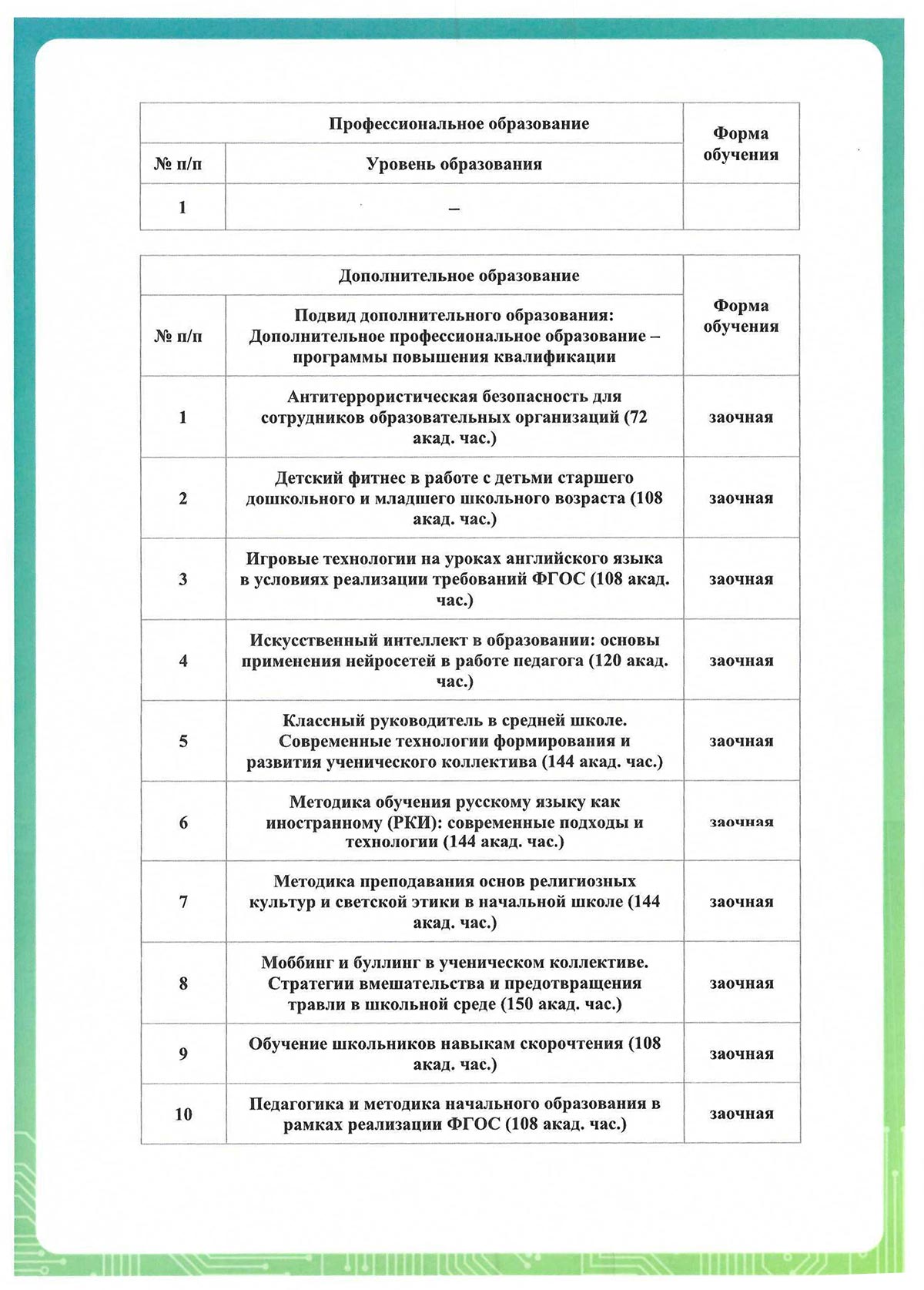 - Документ об образовании и о квалификации (фотография или скан-копия);