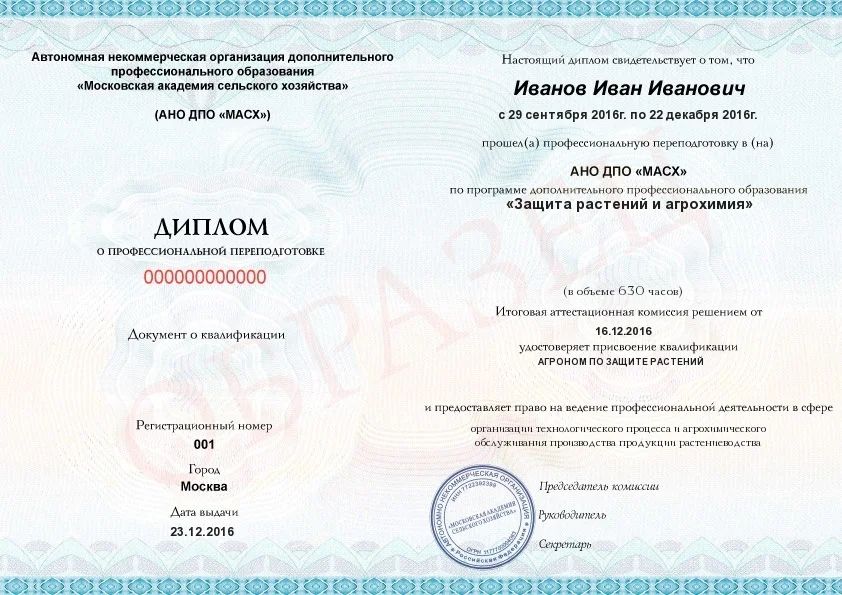 - Квалификация: Агроном по защите растений