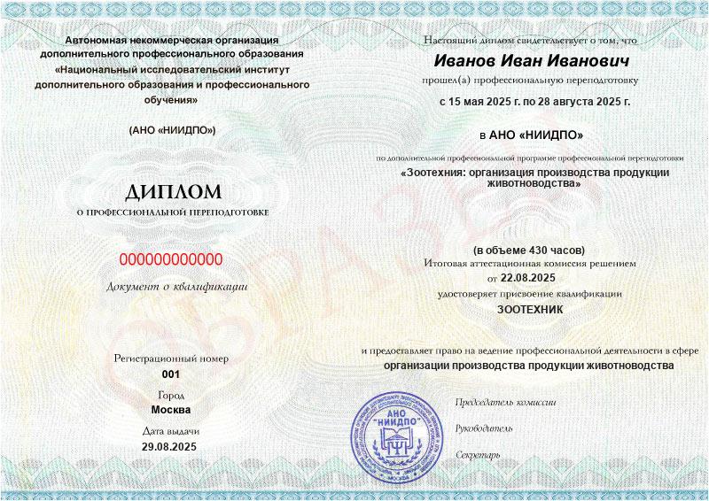 - Получите диплом о профессиональной переподготовке по зоотехнии и начните карьеру на сельхозпредприятии, птицефабрике, мясокомбинате, в НИИ или в собственном хозяйстве.
